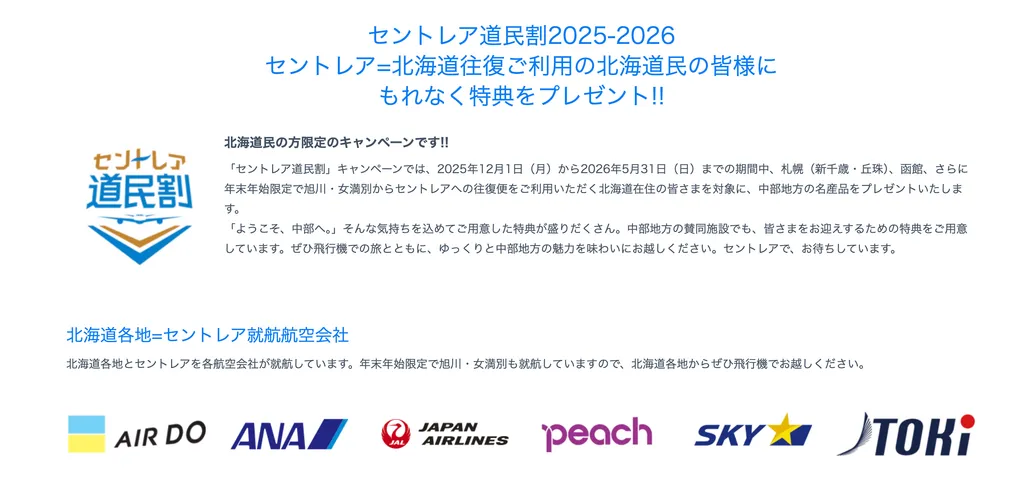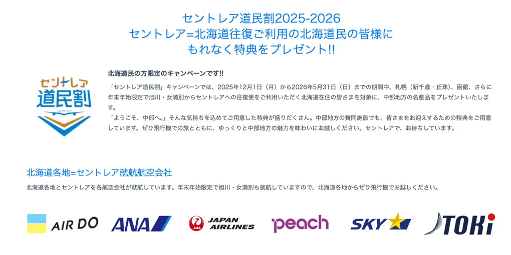 北海道から参加される方必見! セントレア道民割