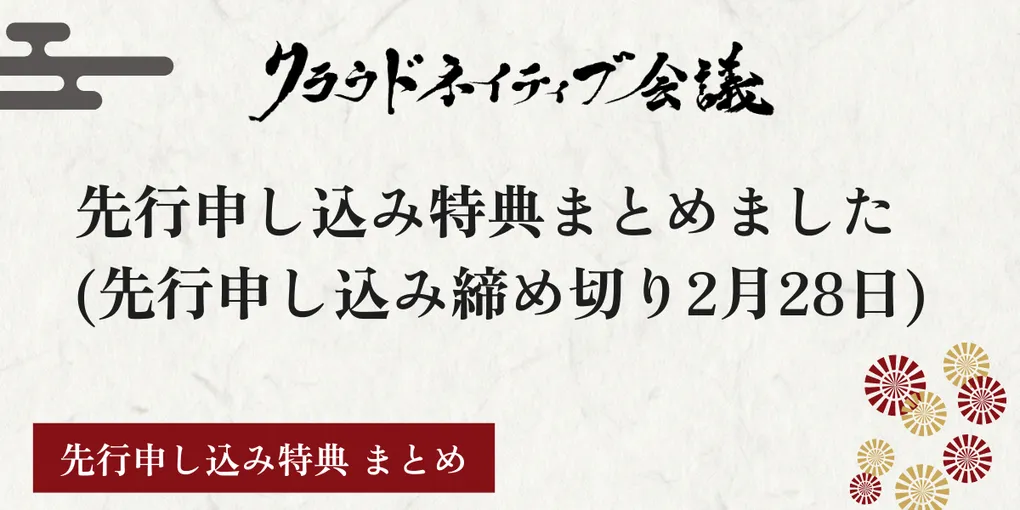 2026年5月14日〜15日に名古屋・中日ホール&カンファレンスで開催されるクラウドネイティブ会議では、2月28日(土) 23:59までの先行申し込みで受け取れる特典をご用意しています。この記事では、今までいくつかお出ししていた特典をまとめてご紹介します!