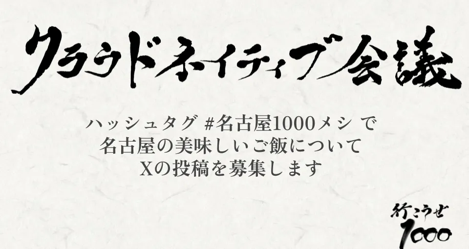 ハッシュタグ #名古屋1000メシ をつけてXで投稿お願いします。実際のお店の写真や、ご飯の写真を添えてもらえればと思います。